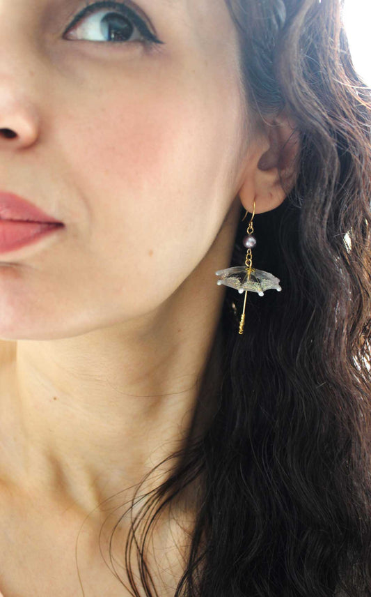 Pendientes colgantes - Paraguas transparentes con brillo holográfico