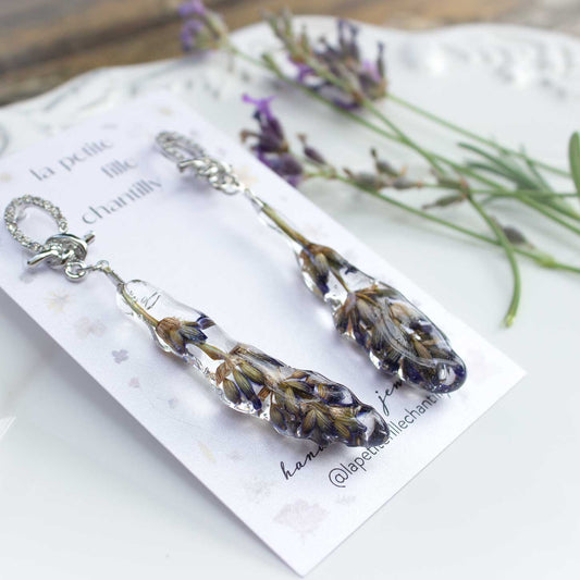 Pendientes colgantes ramita de lavanda natural - tallos de nudo