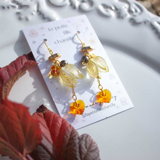 Pendientes colgantes - Corazón de Physalis - modelo 2